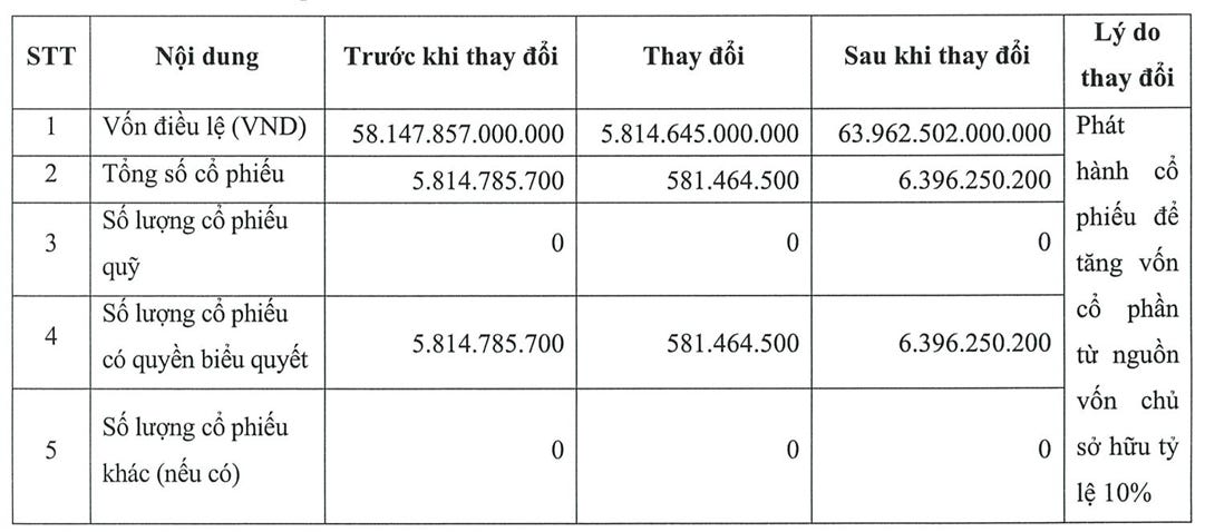 Hình 6: Số lượng lượng cổ phiếu có quyền biểu quyết sau khi thay đổi là 6.396 triệu cổ phiếu.